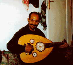 We putt and sputter, the camel grinding its gears because the slave cylinder which operates the clutch is no longer functioning... We stop at another cousin's house, go upstairs... meet cousin, wife, children... have tea... play oud... This cousin, Hussein, plays very good oud... very many styles... His eyes shine brightly into mine as he plays several songs... I play several songs back to him... Jafr is very happy with the situation... We all get in the camel: Jafr, Hussein, wife Zeinab, 6-month old daughter Taif, 4 and 6 year old sons Sa'ad and Aktam, me and Kristina and we take many blankets and we stop and buy chicken.